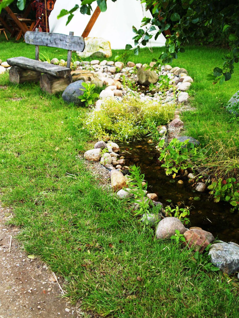 Künstlicher Bachlauf am Rand des Kräuterparks