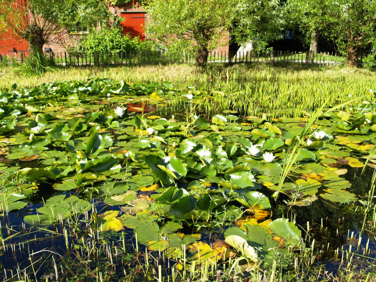Mit Seerosen bedeckter Teich