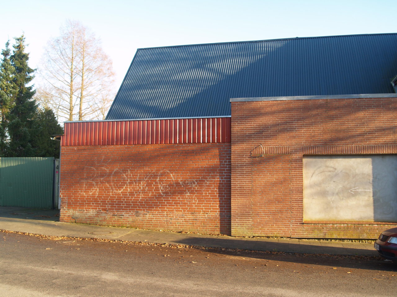Das zugemauerte alte Ladenfenster der Schlachterei Kohlmorgen