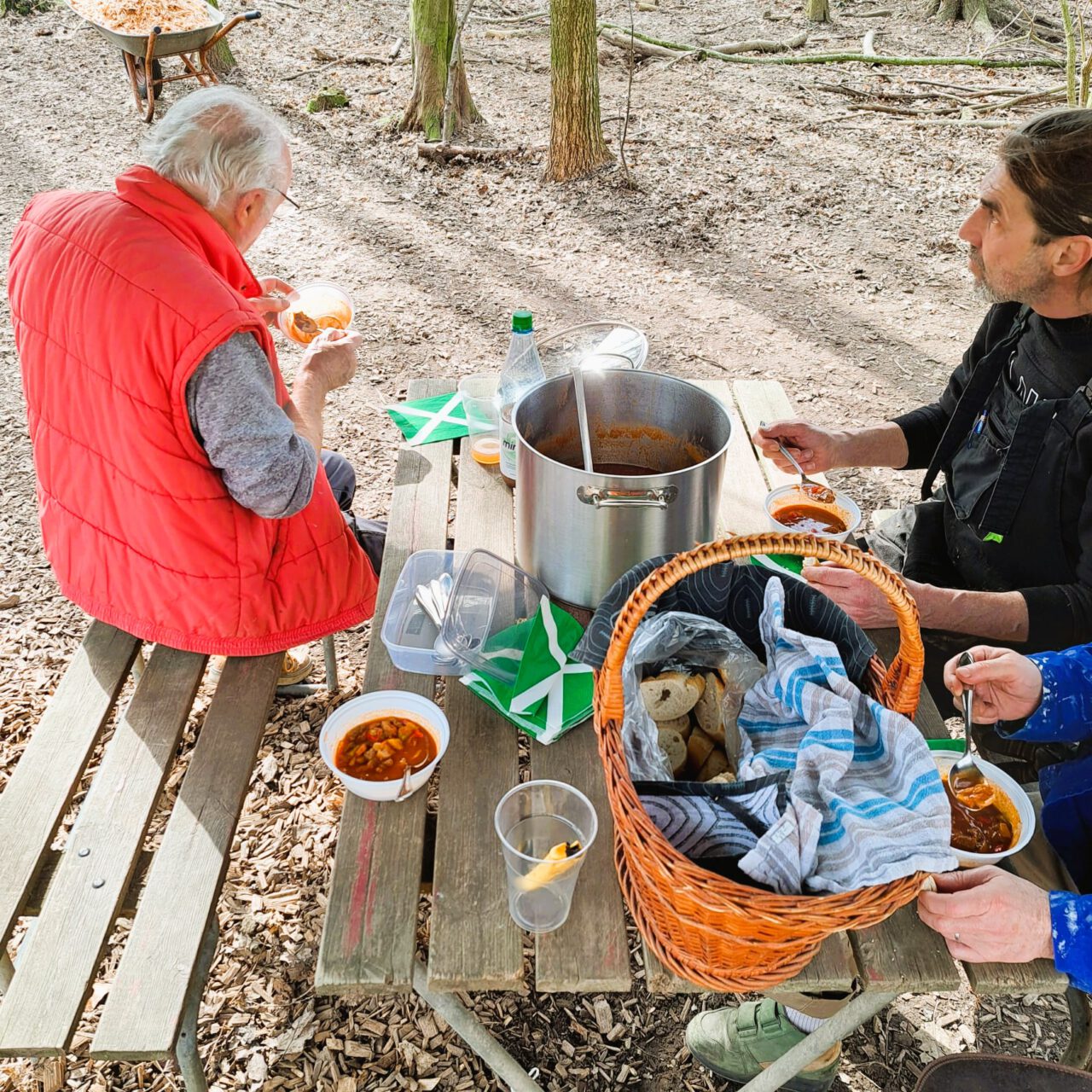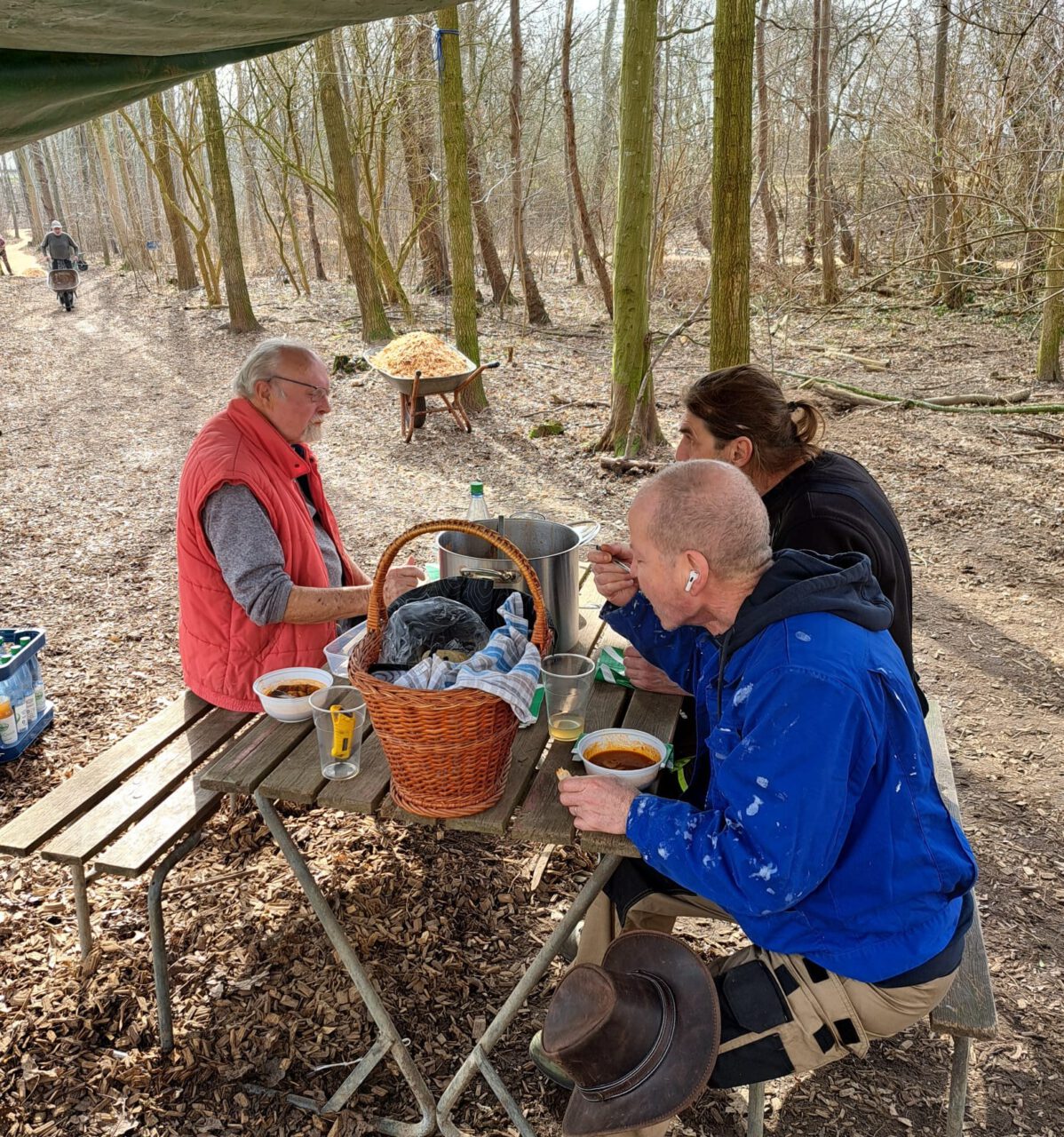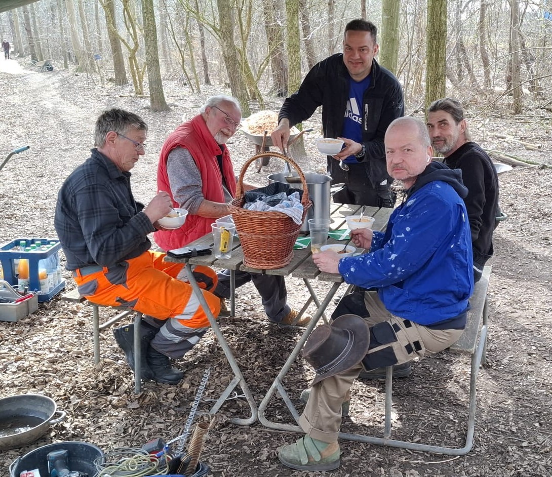 Um 12.00 Uhr erschienen dann Daniel Murawski und seine Mutter im Wald und brachten uns eine sehr leckere Gulaschsuppe.
